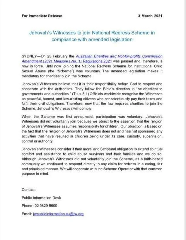 Australia JW Agree to Comply