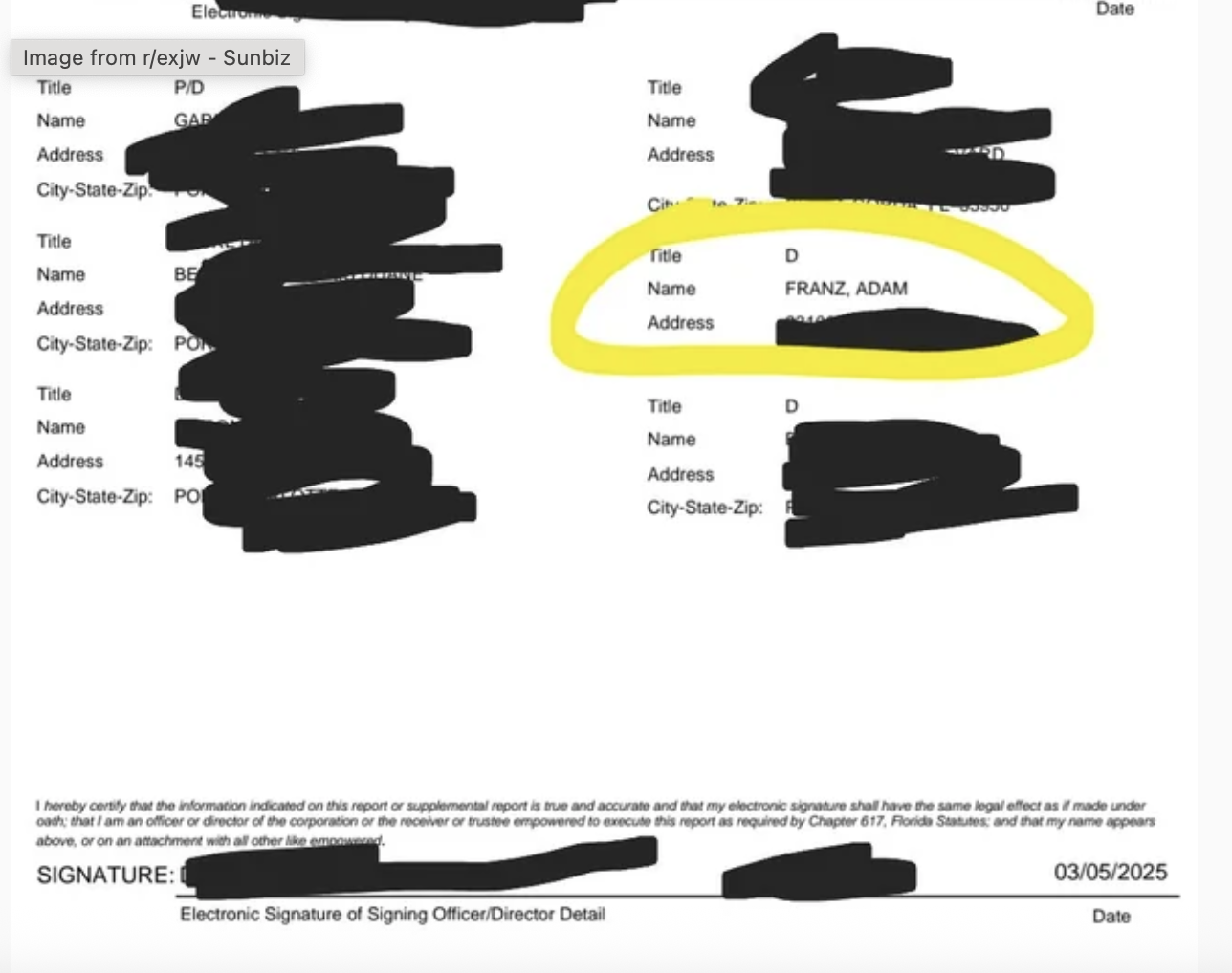 Charlotte County released a statement saying, "Adam Franz is an employee of Charlotte County Public Safety. We are aware that an arrest has been made involving one of our personnel. In accordance with county policy, an internal investigation will be initiated, as is standard with any personnel matter. As this is an ongoing investigation, we do not have further information to share at this time."